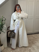 [CRÉATION DUBAÏ] HAUT LONG EN LIN AMĀRIS BEIGE FONCÉ