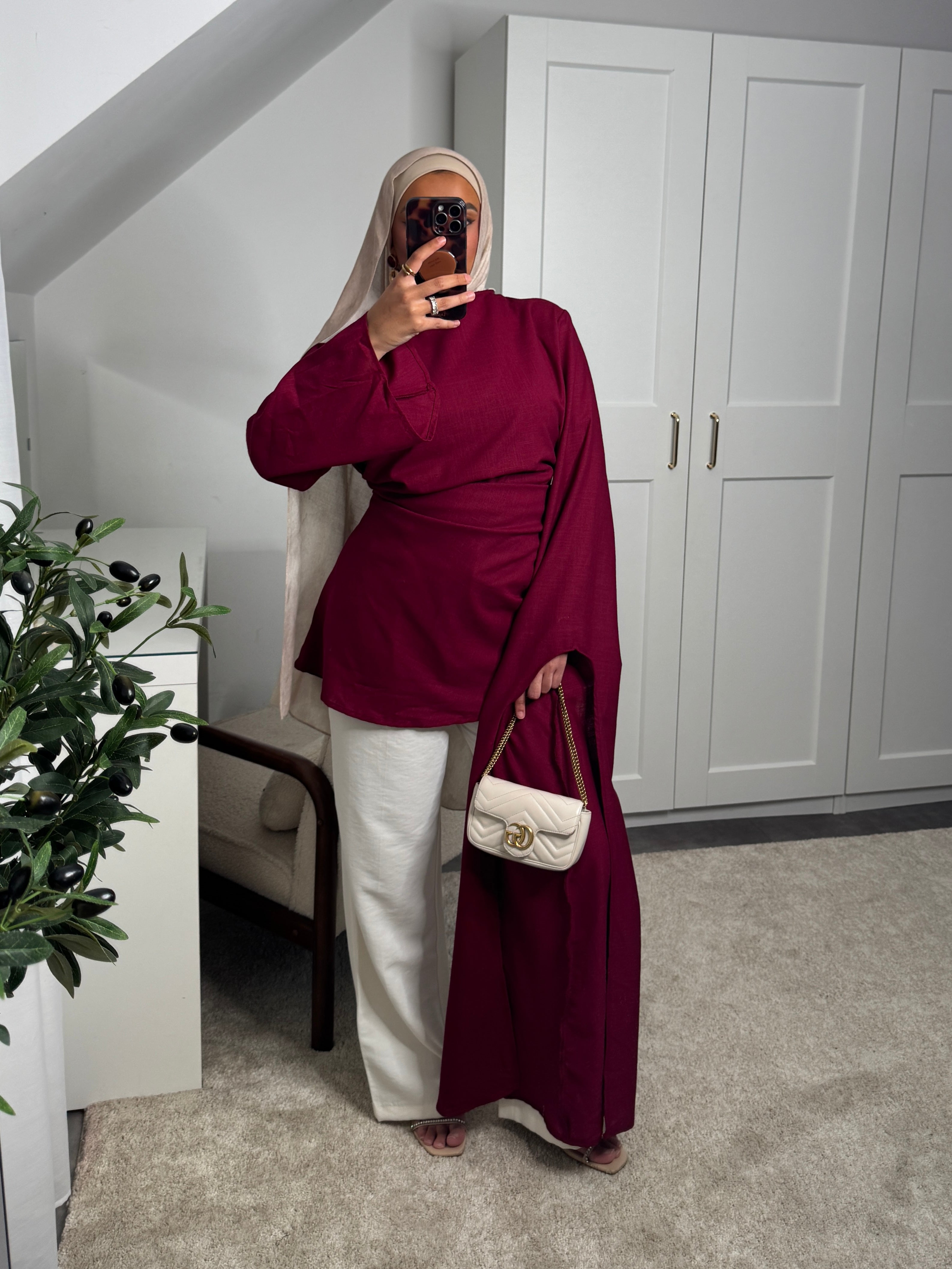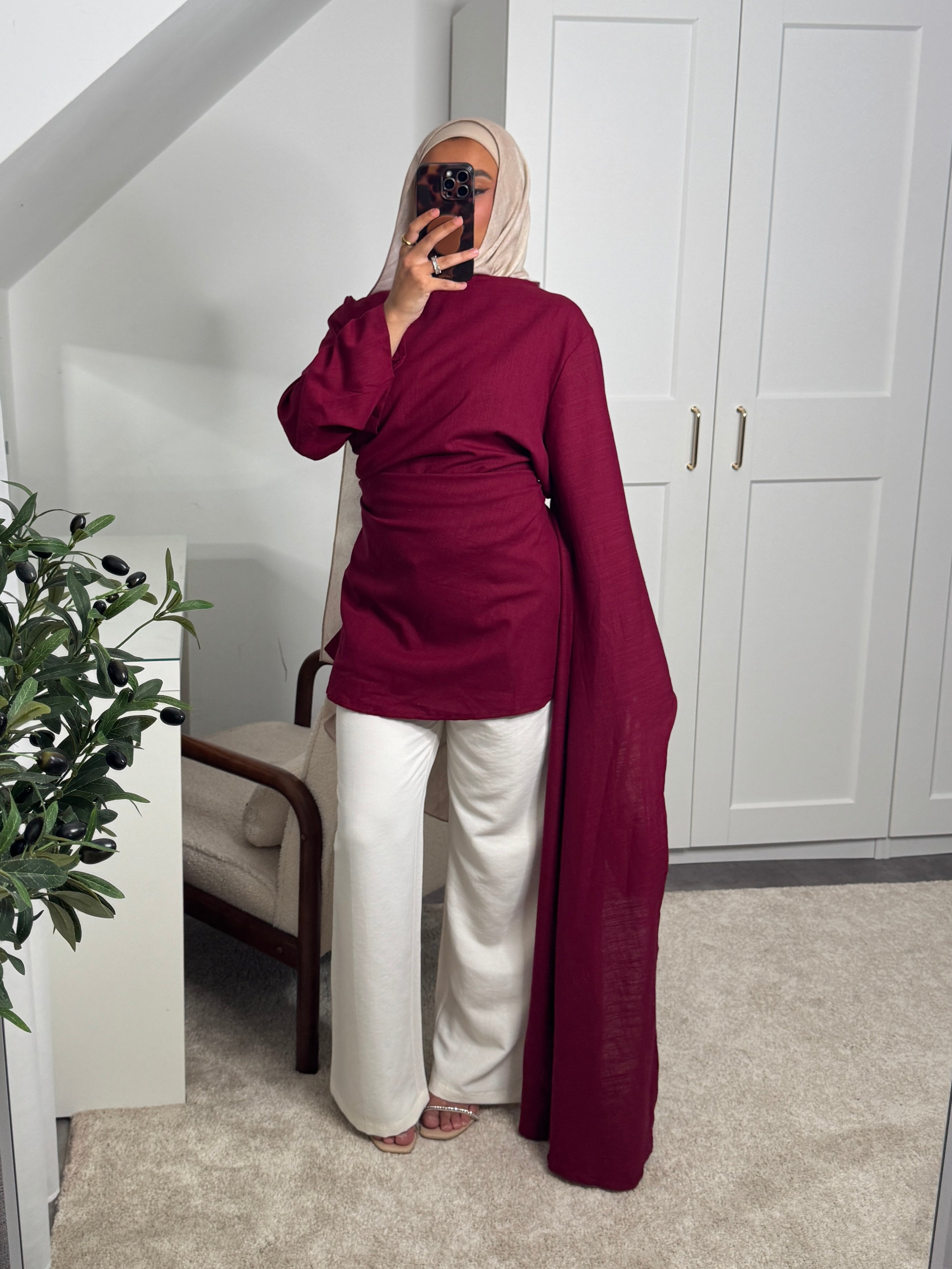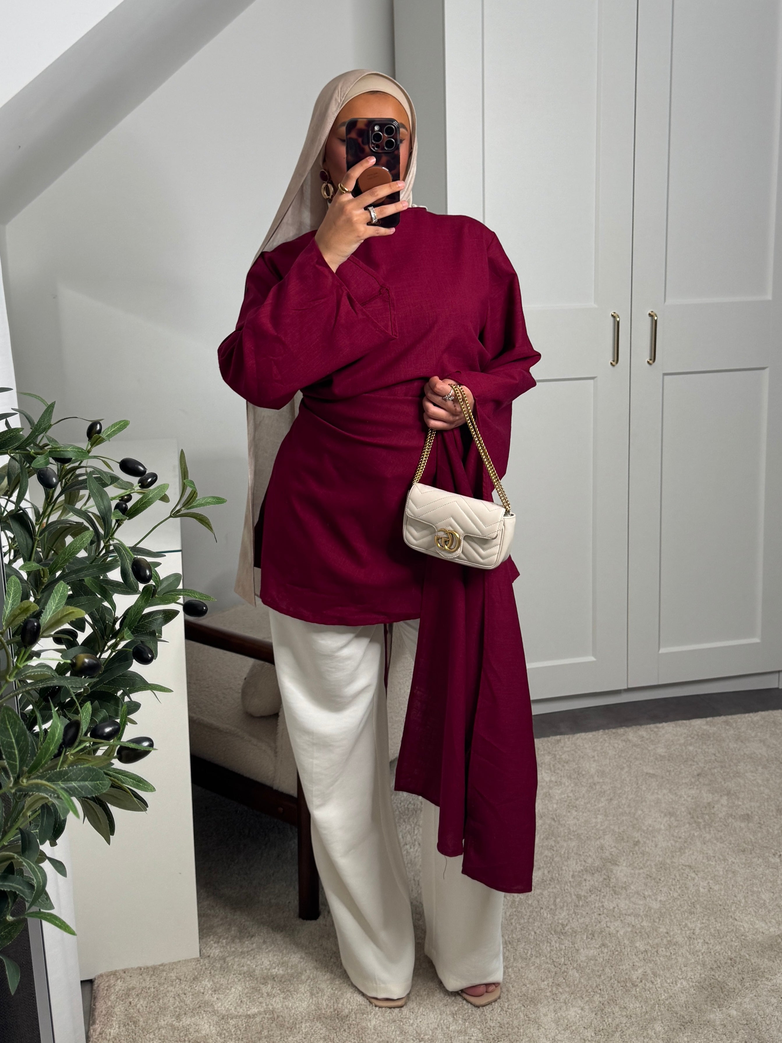[CRÉATION DUBAÏ] HAUT LONG EN LIN AMĀRIS BORDEAUX