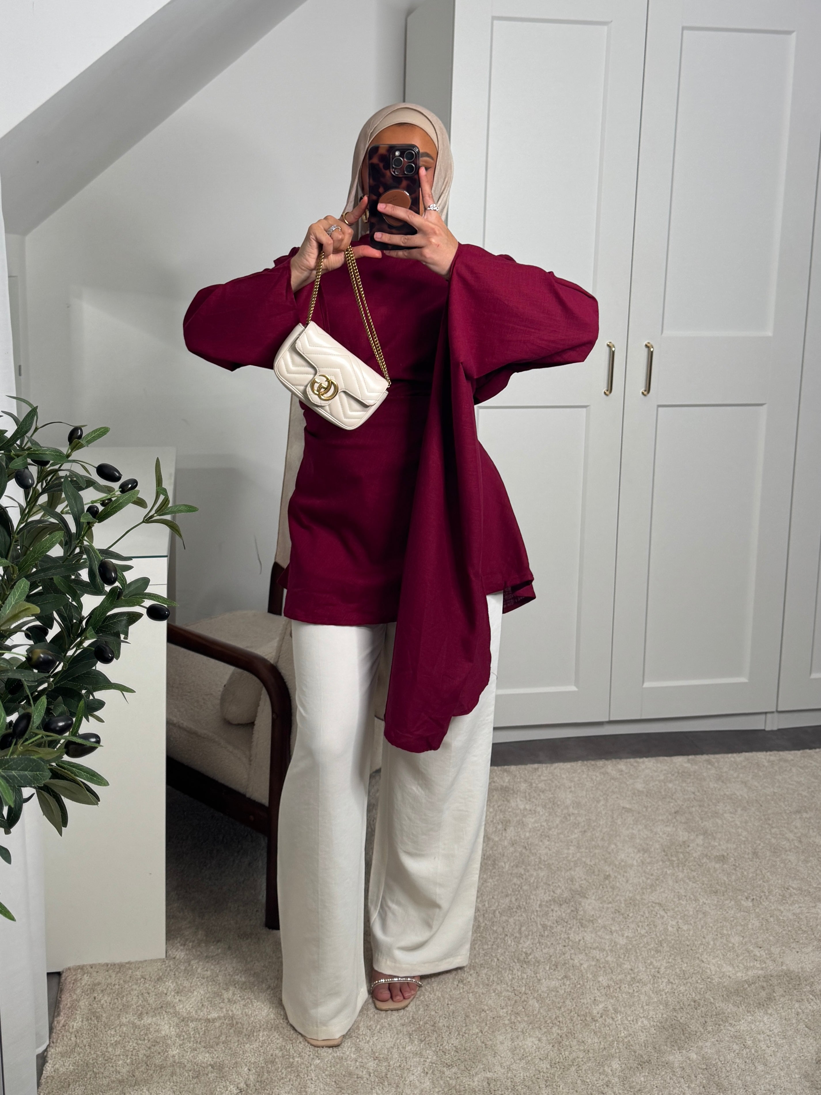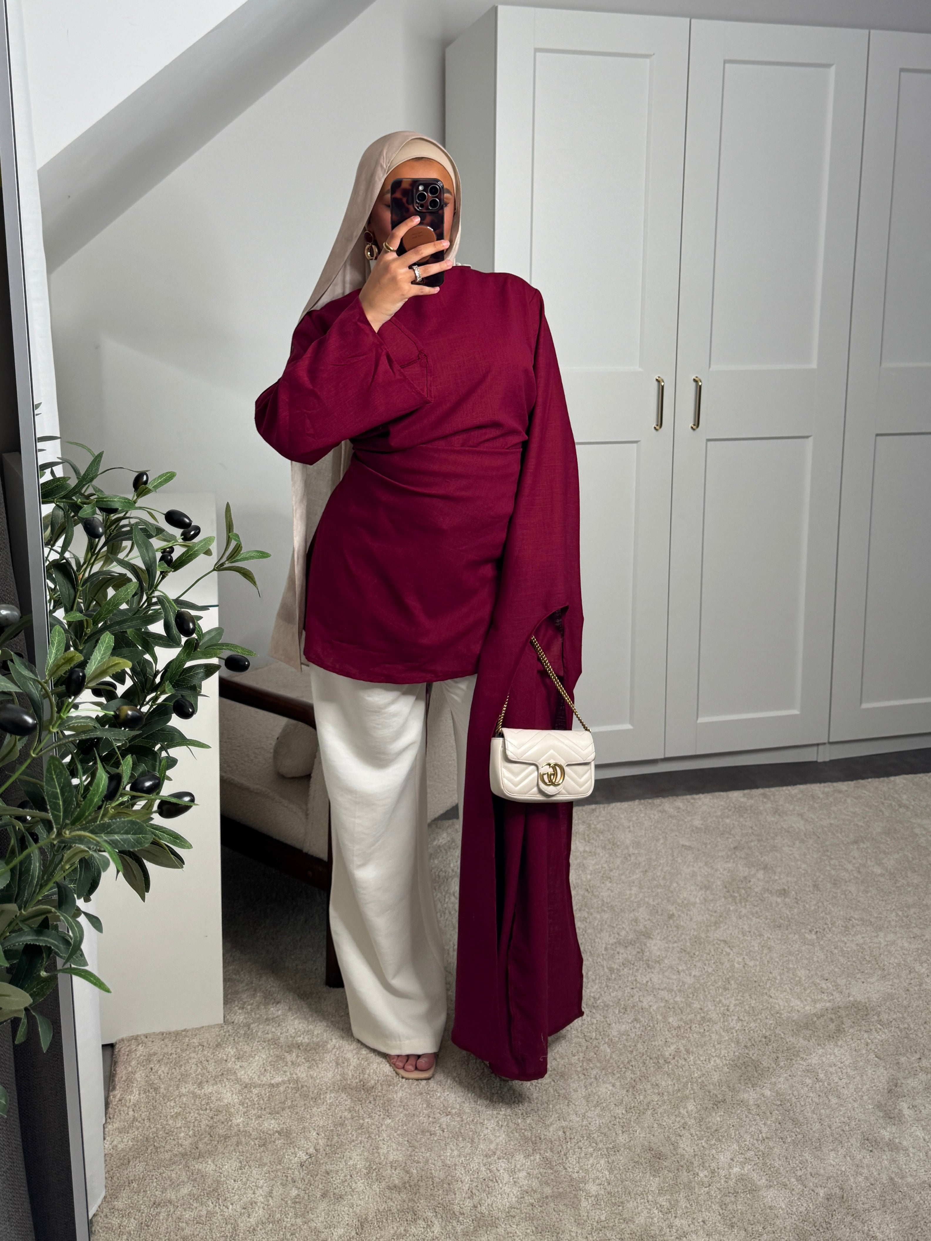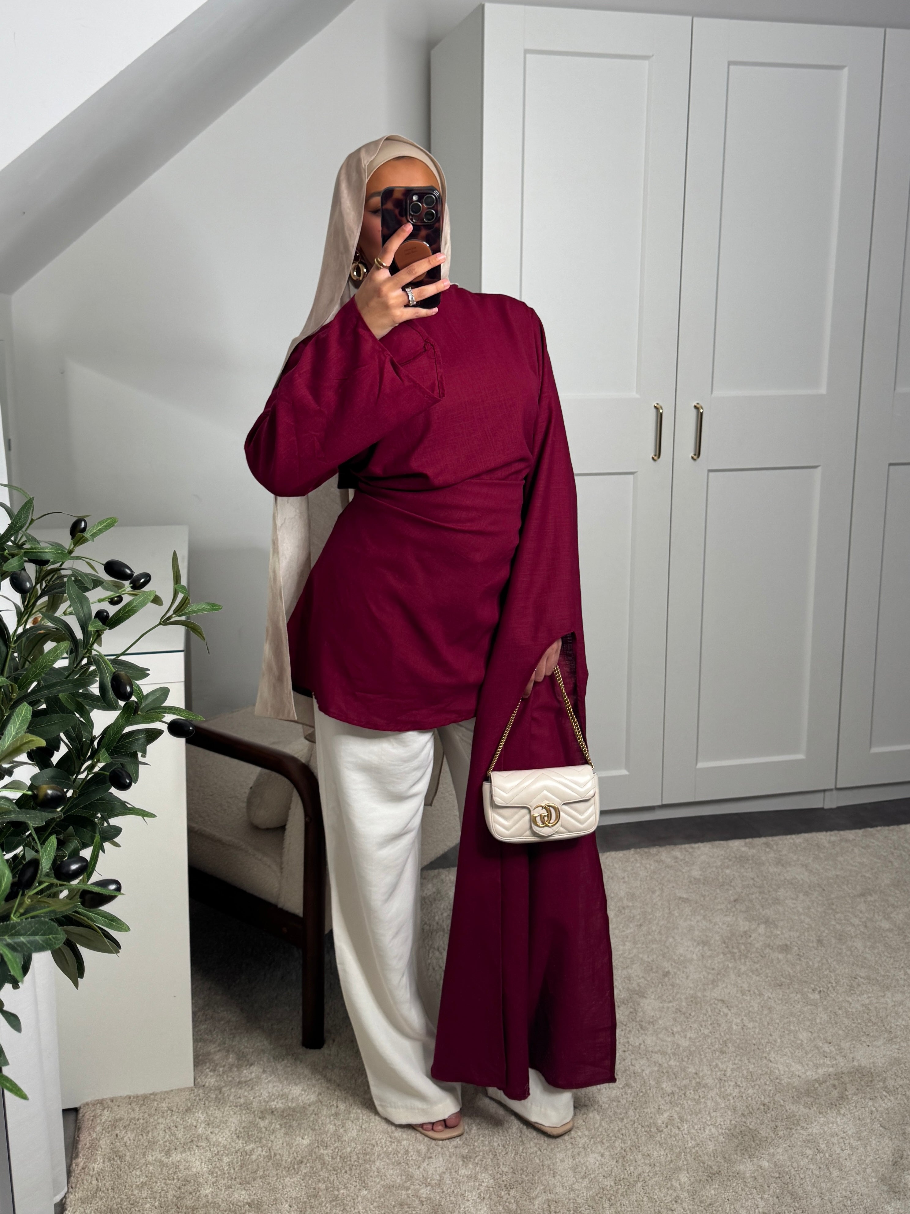 [CRÉATION DUBAÏ] HAUT LONG EN LIN AMĀRIS BORDEAUX