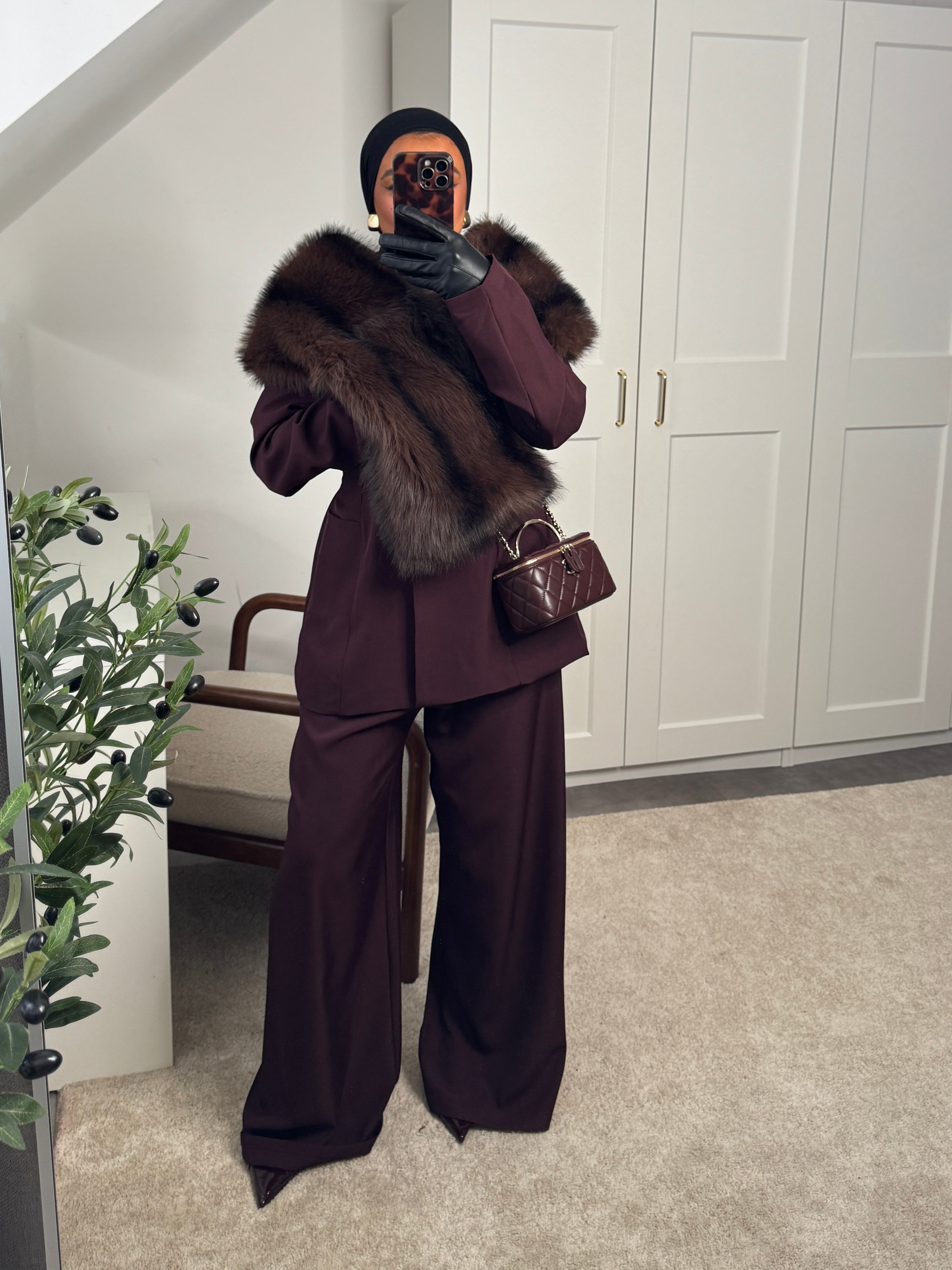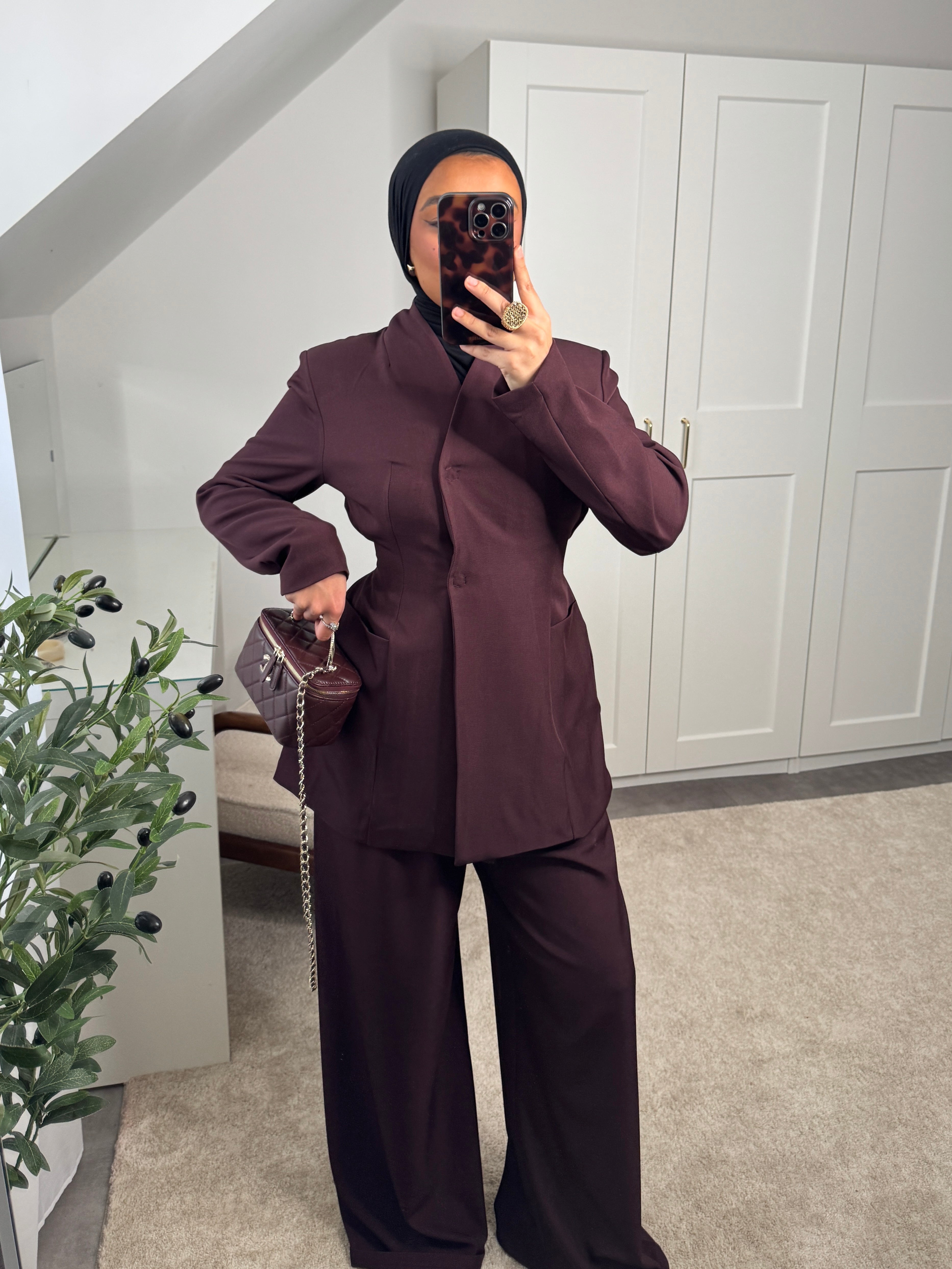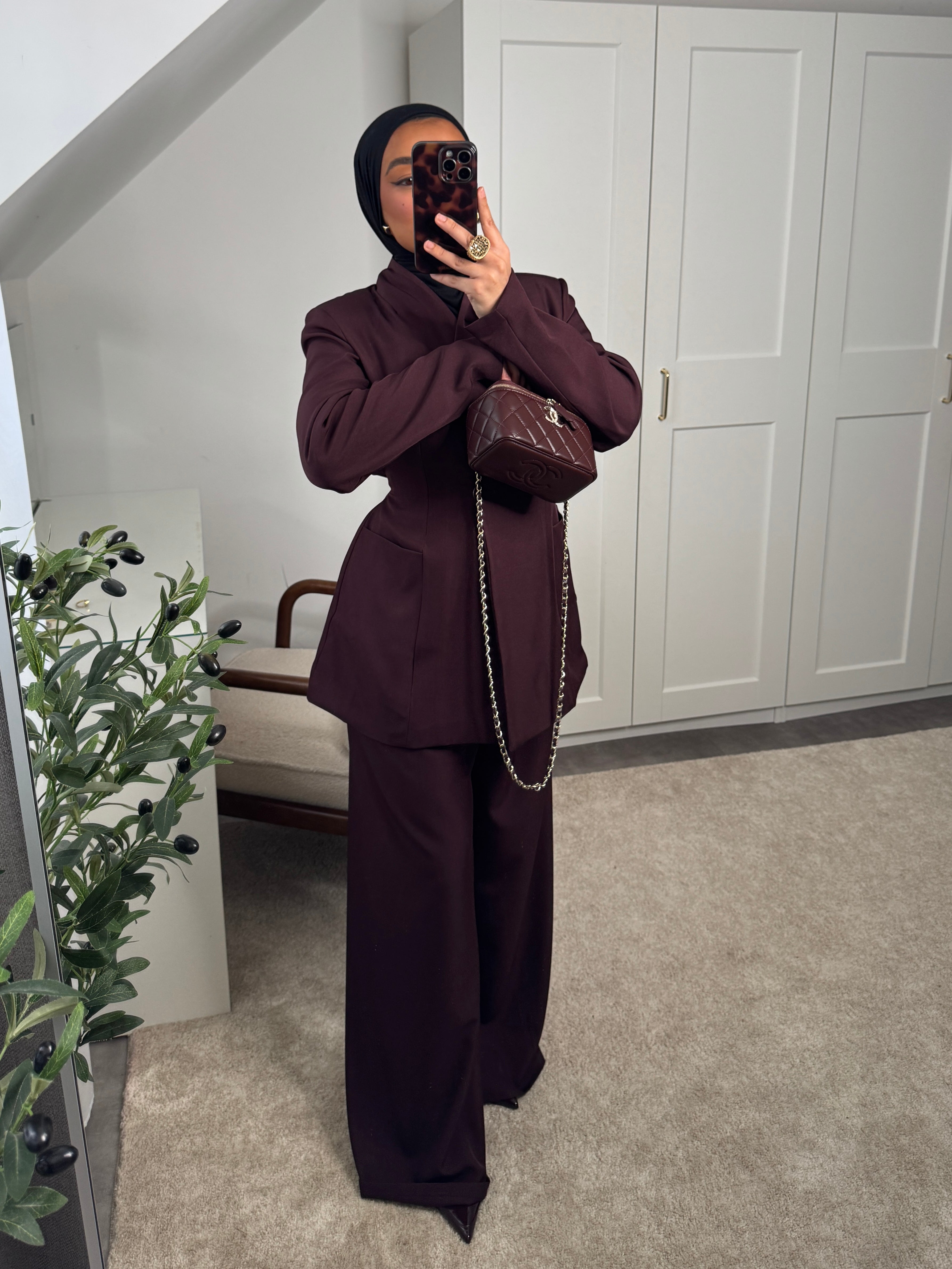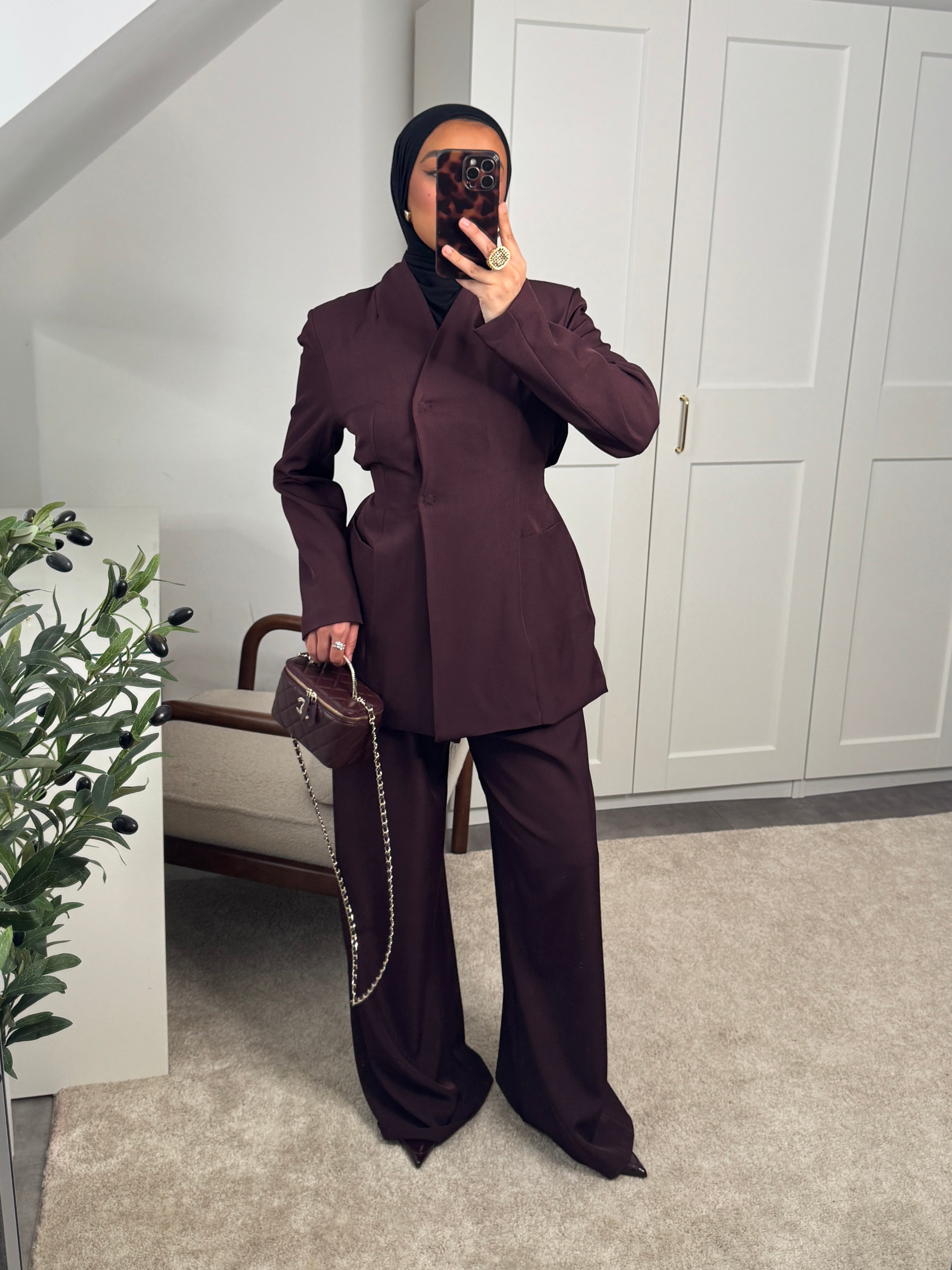 Actualiser la disponibilitéSet 2 pièces - blazer col croisé avec ceinture à l'arrière et pantalon élastique à la taille.